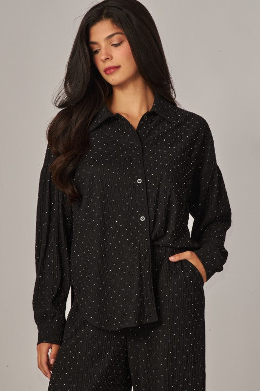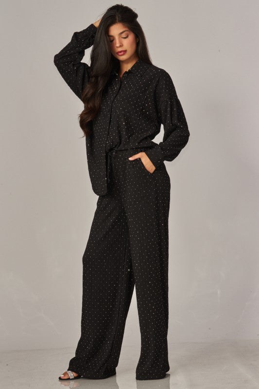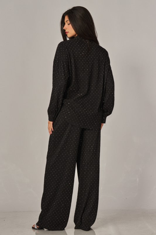 - Top Quality, Rhinestone longsleeve, and wide leg pant